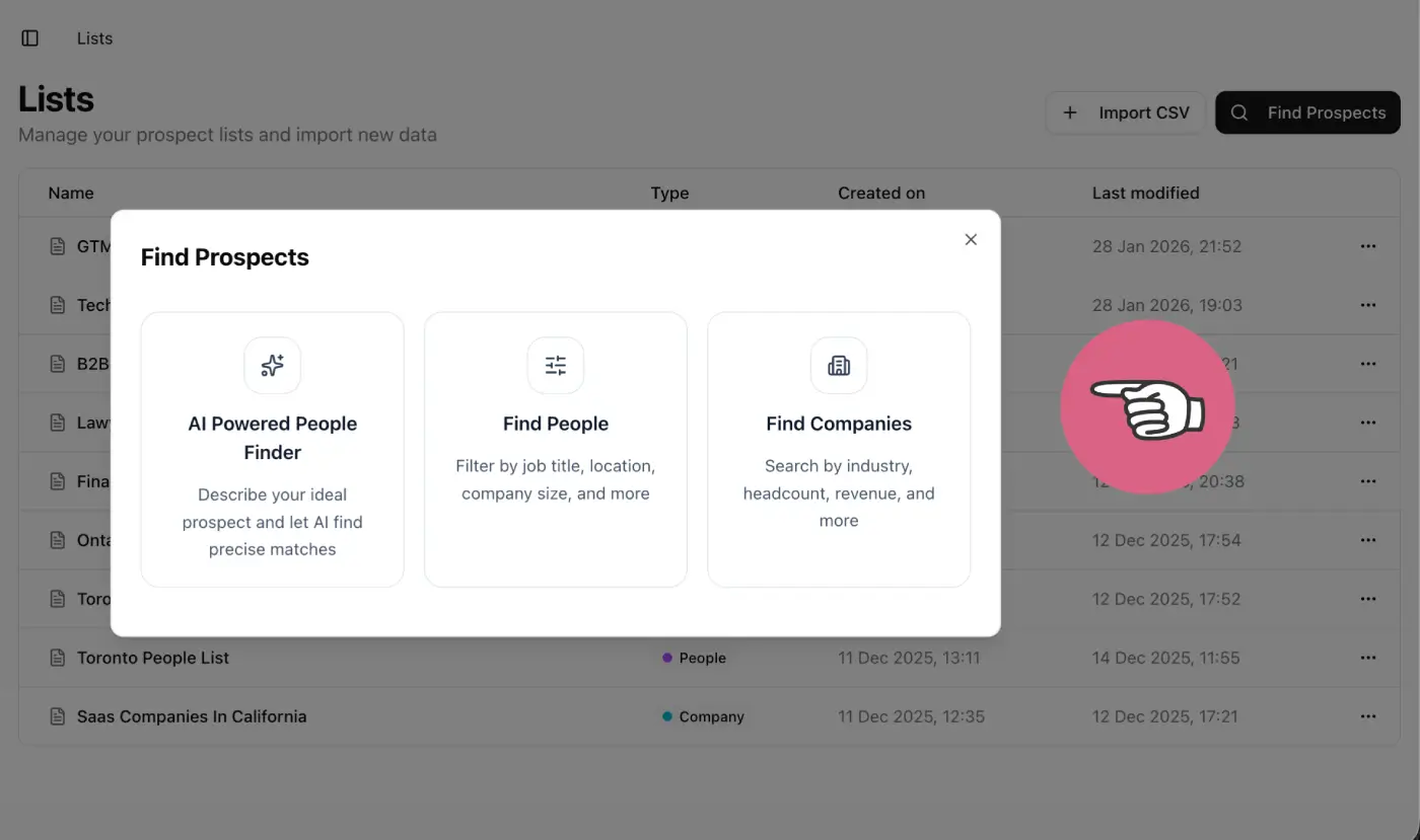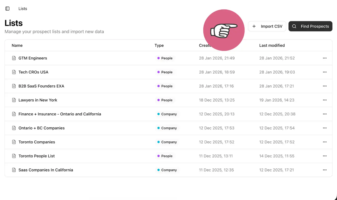 2️⃣ Step 2: Import your prospect list or create a new one