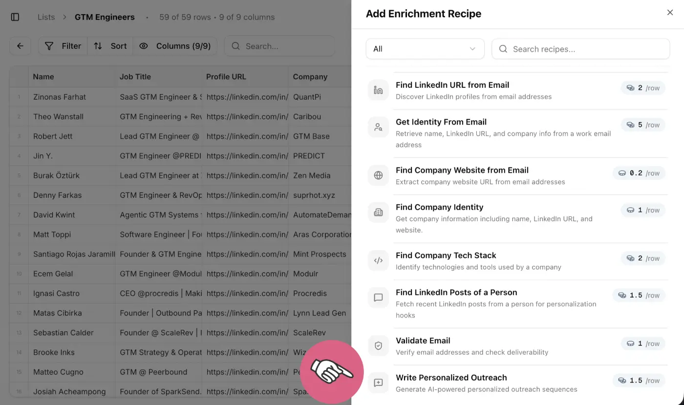 3️⃣ Step 3: Select the "personalized outreach" enrichment recipe